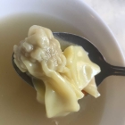 Es gab 5 Wan-Tans in der Suppe , die wir aufgrund der Form für selber gemacht halten. Der Teig war auf den Punkt gegart. Im unteren Teil gab es eine Fleischfüllung die einen leicht würzigen Geschmack hatte. Sie war nicht zu fein und schmeckte.