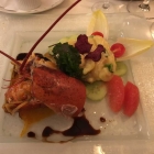 gegrillter Hummer, Erbsen-Kokosnuss-Musseline, Chili-Ananas und Wildkräuter. Color-Blocking auf dem Hummer Teller. Meine Frau hob uneingeschränkt den Daumen. Ich war hin und hergerissen, aber letztendlich bestellte ich