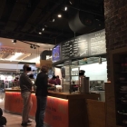 Gut wir kannten diese Dinger bereits, aber ein anderer steht dann da und weiß nicht was er damit soll, einen Hinweis dazu gab es nicht. Das Gerät bimmelte und ich begab mich auf den Weg zur Theke. Die Dame schaute mich nur verdutzt an und deutete mit der Hand an das Ende des Tresens und meinte – da , Koch-. Ja, das sah ich selber auch, aber wo ist das Essen. Am Ende des Tresens sah ich dann ein paar Teller stehen und noch mehr verwirrte Gäste hinter mir. Wir begaben uns Richtung Teller und mussten erst mal den Koch auf uns Aufmerksam machen denn wem gehört was. Es gab eine kurze knappe Ansage in einem Feldwegelton was welcher Teller beinhaltet. Sie tragen hier alle gleiche T-Shirts mit dem Logo drauf und haben auch alle den forschen Ton drauf. Freundlichkeit zum Gast ist was anderes.