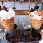 Als Topping gibt es knackige, schön süße Krokantstücke und einen Schokoladen-Trüffel, umhüllt von Kakaopulver, der auf der Zunge zergeht! Beim Eis selbst stimmt einfach alles: Qualität, Geschmack, Schmelz. Die hausgemachte Waffel frisch, knackig und knusprig, unten kein Loch, durch das geschmolzenes Eis auf die Kleidung tropfen könnte.