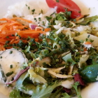 Die beiden Beilagensalate wurden vor dem Essen serviert. Frische Salate, klein geschnippelt, nicht so viel große Blätter wie sonst oft üblich drauf, schmackhafte Kräuter-Vinaigrette.