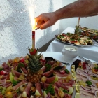 Das bestellte Buffet wurde im neben dem Festsaal im Freien auf der Terrasse aufgebaut. Kurze Wege für die Küche und auch für die Gäste. Alles war gut organisiert.