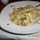 Zur Hauptspeise nahm mein Mann die Bandnudeln mit Champignons und Filetstreifen in Sahnesoße zu 10 Euro.