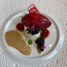 Das Zentrum der Speise war aber für mich geschmorter Lauch in Noriblätter zu zwei Rollen gepackt und mit roten Kaviarperlen belegt. Der Geschmack kam mir asiatisch vor.