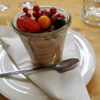 Schon rein optisch gefielen mir die Hirschmedaillons auch ohne Beilagen, die sie nicht hatten, am besten. Obwohl nach der lang anhaltenden Kürbis- nun eine Preiselbeerschwemme herrscht? Zu Wild (ausser Flugwild) finde ich diese Beeren unverzichtbar; zu Schnitzel oder Cordon Bleu habe ich sie noch nie gesichtet oder gegessen. Meine Frau übernahm sie aber sehr gerne. Alle waren mit ihren Gerichten sehr zufrieden, ausser mir. Ich will damit nicht sagen das das Cordon Bleu schlecht war; eines war es aber in jedem Fall, nämlich zu klein. Der Käse,mit dem es gefüllt war, war ausgesprochen nichtssagend will heissen absolut geschmacksfrei. Ein Munster wäre vom Geschmack her sicherlich zu streng gewesen; ein Höhlenkäse, eim mittelalter Gouda oder ein reifer Edamer hätten dem Cordon Bleu allerdings sehr gut zu Gesicht gestanden. Auch der für die Füllung verwendete Schinken war Massenware; ich denke mal, dass es sich bei dem Codon Bleu um TK-Ware handelte. Die Bratkartoffeln waren knusprig und die angerösteten Speckwürfelchen dazu passten gut, allerdings schwammen die Bratkartoffelscheiben und damit natürlich auch die Speckwürfelchen für mich leider in zuviel Bratöl. Man hätte sie besser vor dem Anrichten abgetupft; so triefend mag ich sie nicht sonderlich. Mit Sicherheit wären die Hirschmedaillons mit zusätzlich zwei oder vier Schneebällchen für mich die bessere Wahl gewesen. Das Cordon Bleu in der mir servierten Größe war mit EUR 22,50 zu teuer; mit EUR 18,00 wäre es an sich gut bezahlt gewesen. Bei den Desserts hätte mir das Schokomalheur am besten gefallen; dieser Nachtisch war mit Sicherheit kein Malheur. Da die anderen Mitesser am Tisch mit ihren Gerichte zufrieden waren gebe ich auf meine zweieinhalb Sterne für "Essen und Trinken" noch einen halben Stern drauf, das ist dann aber auch Fahnenstangenende.