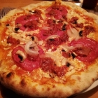 Ich aß eine Pizza Al Dente (Tomatensoße, Käse, Hackfleisch, Knoblauch, Zwiebeln, Champignons, Salami und Schinken) 32cm Durchmesser zu 10,30. Die Pizza war schön würzig, der Boden dünn und cross, aber nicht verbrannt, der Rand fluffig. Das Sugo hatte eine fruchtige Note. Vermisst habe ich die Möglichkeit, etwas Schärfe ins Spiel zu bringen, aber sonst konnte man der Pizza keine Fehler nachsagen.