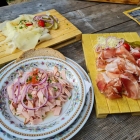 Keine 5 Minuten später waren zwei große Holzbrettchen mit der Brotzeit als auch ein großer Teller mit dem bayrischen Wurstsalat bei uns.