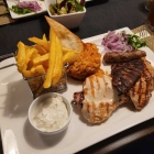 Die Platte selbst, in der Menge reichlich. Bei uns ging ein Drittel zurück. Das Fleisch gut, bis auf die Medaillons. Wie immer, zu trocken. Ist eben so und ahnte ich vorher.