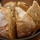 Vermutlich sah ich hungrig aus, denn schon kam das warm servierte Hausbrot mit gemahlenen Traubenkernen, die mir allerdings im fertigen Produkt nicht weiter auffielen. Dafür schlicht ein gelungenes Sauerteigbrot mit einer knisternd brechenden Kruste, das von Salzbutter (im Hause selbst gebuttert!), einem Molkesud und Schnittlauch-Öl begleitet wurde.