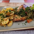 · 1x Gegrillte Hähnchenbrust auf Spinatsoße mit Beilage nach Wahl-hier Bratkartoffeln für 14,90 €