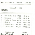 Die Pasta (Tagliatelle) mit Lachs schmeckte ausgezeichnet, ebenso wie die Kalbfleischröllchen, gefüllt mit Mozzarella und Parmaschinken. Hierfür wurde mit € 14,50 für die Pasta und 17,50 für die involtini di vitello nicht zu viel berechnet. Hier ist noch zu erwähnen, wir waren kurz vorher schon einmal da und da ist mit € 16,50 der Truthahn vom Grill mit Salat als Beilage {Foto235294} auch fair berechnet. Zum Abschluss kommt noch der obligatorische Espresso € 2,50, schmeckt sehr gut, könnte aber etwas moderater in der Preisstellung sein {Foto235296}.