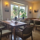 Wir nahmen in der Mitte des Raumes Platz, und alsbald waren die Speisekarten am Tisch. Bevor jedoch die Speisekarten ausgelegt wurden, baten wir den Wirt um die Reinigung des Tisches, denn hier waren noch die Überreste der Speisen unserer Vorgänger(von wann auch immer) noch sichtbar. Allgemein machte die Gaststätte nun nicht unbedingt den besten Anschein, da sah man schon in den Ecken wo lang gewischt wurde, dass in mancher Ecke ein Spinnwebchen hing als auch das der Sand der Gartenanlage unter so manchen Tisch noch lag. Wände und Decken, vor allem auch hier wieder die Ecken waren deutlich vergilbt, du würden mal einer dringenden Sanierung bedürfen.