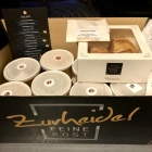Mit einem Karton voller Papier-Dosen mit Plastikdeckel ging es heim, plus eine Flasche. Um 19 Uhr waren wir daheim und wir hatten wirklich Appetit auf das Kommende. Bereits im Restaurant hatte es eine kleine Einweisung in die von Küchenchef Anton Pahl und seinem Team vorfabrizierten 16 Gänge gegeben.