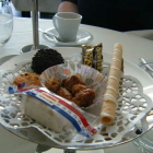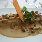 Fast hätte ich es doch glatt vergessen: als Küchengrüße gab es zunächst zweierlei Brot mit drei Schüsselchen: darin sehr gutes Olivenöl, Meersalz und kleine schwarze Oliven. Küchengruß Zwei war ein sehr schmackhaftes Karotten-Ingwer-Süppchen, das auch mir sehr gemundet hat, obwohl ich eigentlich weder Möhren noch Ingwer so richtig mag. Und zwischen Vorspeise und Hauptgericht wurde quasi als Überbrückung ein mit Gappa übergossener Zitronensorbet gereicht. Ganz famos.
