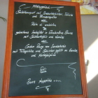 Essen und Trinken: Meine Frau trank ein Mineralwasser Morelli (0,2l EUR 2,50) und dann noch ein Glas aus dem von unserer Tochter bestellten Mineralwasserflasche Taunus (0,75l EUR 7,00). Tochter und Schwiegersohn tranken zum Abschluß je einen Espresso (je EUR 3,00). Ich trank als "Aperitiv" ein Karlsberg Ur-Pils (0,25l EUR 3,00). Nachdem ich mit dem hier angebotenen Lugana San Benedetto keine guten Erfahrungen gemacht hatte probierte ich es zum Essen diesmal mit einem Weissburgunder Cantina Terlan, Südtirol (0,15l EUR 5,90); laut Weinkarte "spritzig, mineralisch, trocken". Dieser Charakterisierung ist nicht hinzuzufügen; sie trifft es auf den Punkt. Als Digestif nahm ich einen Glenlivet für EUR 8,50. Etwas überrascht waren wir beim Bezahlen, dass sich auf unserer Rechnung eine Flasche Ruinart Rosé für EUR 145,00 fand; der Irrtum liess sich aber flott aus der Welt schaffen. Den Ruinart hatten höchstwahrscheinlich die lustigen Witwen am Nebentisch, die es wohl in Erinnerung an das Ableben eines oder mehrerer der Gatten auch ansonsten ordentlich krachen liessen, gehabt; ich hatte zuvor Rötliches im ein und anderen ihrer Gläser gesehen. Diese Ruinart kostet übrigens im Einkauf, habe ich gerade gegockelt, 63 - 68 Euronen, ist also auf der Weinkarte mit EUR 145 direkt noch fair bepreist.