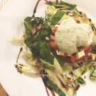 Gegrillte, mit Linsen gefüllte Tintenfischschulps mit lauwarmen Linsen und Blattsalat. Ebenfalls ein Gericht, das ich so noch nicht kannte.