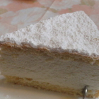 Der Teig des Bodens war wohl eine Bisquit-Schicht. Sehr locker und leicht. Dann folgte die Käse-Sahne-Füllung. Sie war himmlisch cremig und luftig. Leichte Zitrusaromen rundeten den Geschmack ab. Oben war noch ein dünner Teigdeckel, der über und über mit feinem Puderzucker bedeckt war.