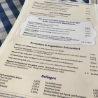Es gibt hier eine Karte aus Karton mit dem Namen und Adresse vorne drauf . Die inneren Seiten sind bedruckt. In eine kleine Tasche aus Klarsicht wird die Empfehlung vom Küchenchef reingesteckt. Wechselt anscheinend öfters. Es gibt hier hauptsächlich Fleischgerichte. Als Fisch einmal Bachforelle und Räucherlachs. Vegetarisch Rahmschwammerl oder Käsespätzle. Die Karte ist auch auf der HP einsehbar. Hier wird auch mit einer Mittagskarte geworben.
