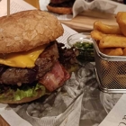 Zur Hauptspeise orderte ich einen Burger, mit 180 Gramm Paddy, medium. Als Sauce wählte ich "Kimchuri", super, dass die Sauce in einem extra Schälchen serviert wurde. Ich wählte "erstklassige" Pommes als Beilage. Meine bessere Hälfte entschied sich für "Süßkartoffel-Pommes", sahen und schmeckten "Handmade". Sie wählte den klassischen Burger mit Käse dazu eine rauchige Smokey Sauce. Die war Bombe. Was uns beeindruckt: jeder Burger hat ein eigenes ausgewähltes Brötchen. Die beiden Burger waren perfekt aufeinander abgestimmt, auch wenn sie an die Referenz Burger aus Mannheims Lustviertel "Lupi" vom Laufhaus #19 nicht herankommen. Dennoch gibt es heute für das Essen volle 5 Sterne.