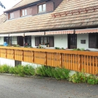 Der Berggasthof liegt auf etwa 700 Metern an einem sonnigen Hang. Bei gutem Wetter lädt eine großzügige, hübsch möblierte Aussenterrasse zum Draussensitzen ein. Gerne wird der Gasthof von Wanderern, Radfahrern und Bikern frequentiert; es steht aber auch ein kleiner Parkplatz auf dem gegenüberliegenden Waldstück zur Verfügung. Obwohl wir keinen großen Hunger haben, machen wir hier erst einmal Rast, vor allem um die vielfach gelobten Renovierungsarbeiten des Hauses zu betrachten und das aktuellen Speisenangebot zu testen.