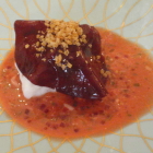 Makelloses klassisches Handwerk begegnet uns mit dem Strudel von Taube, Poularde als Farce und Leber. Was für eine Überraschung und Wohltat, bei all den wilden Kombinationen und Avantgarde-Menüs auch mal wieder ein derart traditionelles Gericht serviert zu bekommen, das fast wie aus der Zeit gefallen wirkt, weil sich viele Köche diese Arbeit halt nicht mehr machen. Wenn die hohen Kochmützen zu einem Gang passen, dann ganz sicherlich zu diesem.