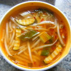 Die Gerichte auf dem aktuellen seit dem 01.02.25 gültigen Flyer sind identisch mit den Gerichten von 2022; was sich geändert hat sind allerdings die entsprechenden Preise. Für meine liebe Frau hatte ich aus der Abteilung "Thailändische Gerichte" die T4 geordert: "Garnelen mit Reis, Kokosmilch & Gemüse in rotem Curry (scharf)" für EUR 15,50. Für mich gab es als Vorspeise die 4e: Suppe "Canh-chua Vietnam Chefkoch mit Garnelen, Hühnerfleisch & Gemüse (sauer-scharf)" für EUR 4,80 und als Hauptgericht aus der Abteilung "Empfehlungen" die N2: "Currynudeln mit Hühnerfleisch, Garnelen, Gemüse und Ei" für EUR 12,50. Die Hauptgerichtsportionen waren so üppig, dass wir beide nicht alles geschafft haben und uns die Reste am Abend aufgewärmt zu Gemüte führen werden. Alle drei Gerichte waren sehr schmackhaft; meine Chefkoch-Suppe hatte ich so höllisch scharf nicht in Erinnerung gehabt.