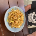 Beim Bami Goreng waren die Nudeln auf den Punkt gegart. Als Gemüse gab es Zwiebeln, Porree, Staudensellerie, Chinakohl, Gelberüben, Sojasprossen , Bambussprossen und Pak Choi . Garnelen waren nicht zu weit gegart und auf dem Gericht vertreten. Als Fleisch gab es Hühnchen und Rind. Beide Sorten zart gegart aber sehr spärlich vertreten, dürfte etwas mehr sein. Das scharf lassen wir jetzt mal wieder weg trotz der zwei Chili, wir konnten nichts davon finden, ansonsten schmeckte es.