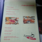 Fazit: Gute Auswahl für Frühstücks-Einsteiger, -Fortgeschrittene und -Profis zu normalen Preisen; mit diesem recht vielfältigen Angebot wird die "Espresso Bar" mit Sicherheit Kundschaft von der ebenfalls im Saarbasar ansässigen "Barbarossa"-Filiale zu sich herüberziehen. Die haben auch ein, allerdings nicht so vielfältiges, Frühstücksprogramm. Möglicherweise werden sie nachziehen; warten wir es mal ab.