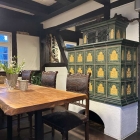 Die Alte Vogtei liegt in der Nähe des Köngener Schlosses. Leicht mit dem Kfz zu erreichen. Straßenparken bis 20:00 Uhr 2 Stunden frei mit Parkkarte. Das Gebäude ist das älteste Fachwerkhaus der Gemeinde, perfekt urgemütlich eingerichtet mit großer Außenterrasse. Am wohlsten fühle ich mich im Kaminzimmer, wo ich auch heute saß.