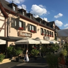 Frisch gemacht entschieden wir uns auf der Terrasse des Landhauses unser Abendessen einzunehmen, zumal eine Inaugenscheinnahme der benachbarten Betriebe keine großen Unterschiede zu unserem Gastgeber in der Küchenphilosophie erkennen ließen. Also nahmen wir bei einem Glas Wein die bürgerlich-deftige Speisekarte in Augenschein.