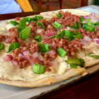 Meine Begleitung lobte ihren mit Zwiebeln, Sour Cream und Südtiroler Speck belegten Flachling jedoch nach dem ersten Happen und mampfte sichtlich zufrieden vor sich hin.