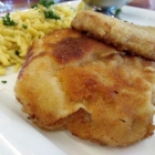 Meine Frau wählte aus dem vegetarischen Angebot die in Salbeibutter gebratenen Gnocchi auf buntem Antipasti-Gemüse in Tomaten-Kräutersud (9,50 Euro), während ich trotz der warmen Witterung Lust auf das panierte Volksgericht schlechthin hatte. Zwei elegisch gebutterte Schnitzel vom Schweinerücken (10,80 Euro) sollten von Champignonrahmsoße süffig unterfüttert - und von hausgemachten Spätzle auf gutbürgerliches Sättigungsniveau gehoben - den Weg zum hungrigen Kostgänger finden.