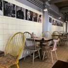 Das weißgekachelte Umkleidekabinenambiente mit dem zeitlos-grauen Industrial-Look der von Rohrleitungen und Metallstreben durchzogenen Decke und den obligatorischen Vintage-Hängeleuchten wurde von großformatigen Farbfotografien aus der Heimat sowie mehr oder minder bekannten Persönlichkeiten (diese jedoch komplett in schwarz-weiß) kontrastiert und damit etwas lebendiger gestaltet. Wobei auch ein Bild der argentinischen Fußball-Legende Diego Armando Maradona, der ja lange Zeit für Neapel kickte, in der Reihe der honorigen Schwarz-Weiß-Helden zu finden war. Also so „lebendig“ war die Bildergalerie dann auch wieder nicht.