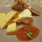 Die geschnittenen Römersalat-Herzen zum Start mit einem fruchtigen, aber zu unauffälligen Karotten-Ingwer-Dressing wurden von knusprigen Brotchips (statt Croûtons) begleitet sowie Gemüse-Crudités, was im Französischen viel eleganter klingt als das deutsche Rohkost. So oder so ging diese Idee nicht auf, denn die großen, viel zu dicken, eiskalten, geschmacklosen und sich schon biegenden Scheiben von Karotte, Kohlrabi und Rettich waren im Ganzen kaum zu kauen und, da untergemischt, im Salat auch nicht wirklich einfach zu schneiden. Ich sortierte irgendwann konsequent aus.