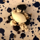 In diesem Menü wurden alle tierischen Produkte fast ausschließlich auf einem Tepanyaki Grill zubereitet, auch diese Scholle. Sautierter Spinat dazu, ergänzt durch Senfkörner, geröstet und in einer Sauce verfeinerten das. Die Bratkartoffeln fanden sich als Creme wieder…sehr spannend. Etwas schlichterer Gang, aber genauso schmackhaft. Schlicht blieb es, aber in Sachen Zutaten wurde mal die ganz dicke Kanone herausgeholt, Morcheln, Sot l’y Laisse und Fèves wurden serviert.