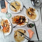 Was tun? Leider saßen wir am Ende des Balkons und etwas außerhalb des Service-Blickfelds, so dass ich mit der gewaltigen Suppenschüssel erst mal auf mich selbst gestellt war. Also nahm ich es auf mich, Fleisch und Gemüse, das heißt Sojasprossen und Chinakohl, rauszufischen und von den Unmengen Blütenkapseln zu befreien. Etwas umständlich, aber so konnte ich wenigstens weiteressen, ohne meinen Nieren Gewalt anzutun. Allerdings längst nicht mit dem Genuss, den ich mir erhofft hatte.