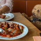 Meine Frau war mit „Knuspriger Ente mit Sojasprossen und Kantonsauce“ (ebenfalls 13,90 €) auf der sicheren Seite geblieben. Mit Ente macht man im Yangda nichts falsch. Weit entfernt von jenen in der Fritteuse gedörrten Vögeln, an denen man in deutsch-chinesischen Speisehäusern häufig sein Gebiss trainiert, sind diese hier nicht umsonst gestorben. Mit ihrem zartem, leicht mürbem Fleisch und ihrer knusprigen, aromatischen Haut machen sie Freude vom ersten bis zum letzten Scheibchen. Ich durfte probieren und war sehr dankbar dafür.