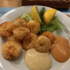 Trotz des Duftschocks hatte ich mir dann doch den sog. Gourmet-Fischteller bestellt, bestehend aus fünf verschiedenen, ordentlich dimensionierten und sauber gebratenen, aber bis auf den Lachs alle irgendwie ähnlich schmeckenden Filets, plus einer Riesengarnele.