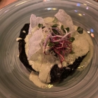 GEGRILLTER IBERICONACKEN -15,90 € dazu gegrillte Ananas und Mole-Poblano. Auch von mir bestellt und für mich der Abschluss meines Tapas Menüs im Cho & Riso. Perfekt gegrilltes Schweinefleisch fand sich auf dem Teller, ergänzt durch die Säure der gegrillten Ananas Scheibe. Spannend die Chili-Schoko Sauce mexikanischer Herkunft, die das Ganze mit einer kulinarischen Klammer versah. Nummer zwei im kulinarischen Ranking für mich.