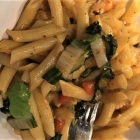 Da vermutlich erst vor kurzem wieder Hals über Kopf das Lokal geöffnet wurde, steht erst einmal noch die kleine, nur eine Seite umfassende Take-Away-Karte zur Verfügung (das dürfte sich bald ändern), aber natürlich mit Inhouse-Bedienung am Platze. Dafür wird bereits wieder eine umfangreiche Getränkekarte gereicht. Die Schnelligkeit der Speisenzubereitung und die Frische der Gerichte überzeugt nach wie vor. Der Salat Nizza (8,95 Euro) ist mengenmäßig kaum zu bewältigen mit gefühlt einem ganzen Salatkopf, einer Dose Thunfisch, einem hartgekochten und gevierteltem Ei, dazu jede Menge Cocktailtomaten, Gurkenscheiben, Oliven. Die auf den Punkt gekochte Pasta mit Pollo Piccante (10,45 Euro) kann individuell gewürzt bestellt werden. Ich wähle viiieel Knoblauch und etwas weniger Chili-Sauce, was exakt umgesetzt wird. Dass das Hähnchenfleisch offenbar genau abgewogen wird (pro Portion 70 Gramm) lässt einen aber doch etwas erschaudern. Für die Zuhausegebliebenen ordern wir noch eine Pizza Vegetaria (mit reichlich Aubergine, Zucchini, Paprika, Mozzarella) zum Mitnehmen (9,45 Euro), die – wie auch die anderen Gerichte – bereits nach einer gefühlten Viertelstunde fix und fertig ausgegeben wird. Hier scheint man echt im Akkord zu arbeiten. Sehr fein auch der wirklich sehr große Milchkaffee (mit fluffigem Milchschaum) zum Abschluss.