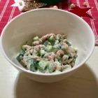 Als Amuse gab es einen Salat aus Frisée, roter Bete, Bohnenkraut, Erdnüssen, Tarama und Kräuterseitling.