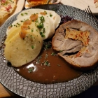 Als Beilage gab es dazu Rotkraut, welches eindeutig nicht aus heimischer Küche entstammte, sondern in dieser Form und diesem Geschmack bei jeglicher Großküche serviert wird. Gut waren hingegen wieder die Böhmische Knödel, so wie man diese aus unserem Nachbarland kennt. Die Kartoffelknödel hingegen waren mir persönlich zu pappig in der Konsistenz.