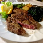 Irgendwie hatte ich mir den Hauptgang völlig anders vorgestellt, aber was sich da vor mir auf dem Teller rekelte, versprach auf alle Fälle Gaumenfreuden erster Güte. Der Hirsch – natürlich hier von der Region – ist butterzart, die Soße (die mitdenkende Chefin hat uns zusätzlich eine kleine Sauciere an den Tisch gestellt) schmeckt cremig leicht nach Thymian, und der Rosmarin dominiert nicht den Kartoffelgeschmack. Einzig mit den roten Pfefferkörnern hätte der Meister des Herdes etwas sparsamer umgehen können. Schon lange hat mir nichts mehr so gut geschmeckt wie dieses Tagliata.