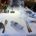 Das Ambiente kann hier leider nicht mithalten, knappe vier Sterne und damit eine Schulnote zwei für die gepflegte Tischkultur und ansonsten leicht beengte, eher generische Gasträume. Hier geht man wegen des guten Essens hin und nicht um verträumt die Szenerie zu genießen und daher ist mir dies in diesem Fall auch keinen Abzug in der Gesamtnote wert.