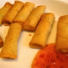 Das Lokal bietet geschätzte 40 Sitzplätze im Innenraum – modern, hell und innovativ eingerichtet. Weisse Tische, gemütliche, gut gepolsterte Schalensessel oder Sitzbänke, individuelle Fototapeten, deren Dekor sich in den Lampenschirmen wiederfindet. Bei gutem Wetter ist die Aussenterrasse geöffnet, ein wahrer, unschätzbarer Pluspunkt im ansonsten klotzigen Mercaden. Das Essen wird frisch zubereitet und dann am Tisch serviert. In meinem Falle nach etwa zehnminütiger Wartezeit. Die Hühnchenscheiben sind aussen angenehm kross und innen zart, die Reisbandnudeln tendenziell schlüpfrig, die in Streifen geschnittene Rohkost (= Salat) eher fad. Dafür schmeckt die hausgemachte Fischsauce etwas zu penetrant nach ungewaschenen Füssen. Muss man mögen. Ich kippe mir zur Neutralisierung lieber noch reichlich Sojasauce drüber. Sehr lecker auf jeden Fall die knusprigen Frühlingsrollen. Hätten allerdings auch etwas wärmer sein können. Der gebratene Reis (4,90 Euro) meines Kollegen kommt dagegen noch pfannenheiss auf den Tisch und überzeugt durch feine Würze und knackiges Gemüse.