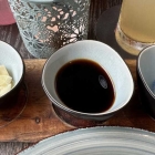 Als Beigabe die Dreifaltigkeit aus Sojasauce, Ingwer und Wasabi, die der Sashimiliebhaber kennt und schätzt, und die auch hier gut passte, denn wie jeder weiß, ist das Tataki dem Sashimi sein Cousin, und das Wasabi war ein echter Stirnhöhlenputzer.