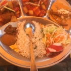 Die Karte hatte auch vegetarische Gerichte, Mixed Sabzi mit frischen verschiedenen Gemüsesorten mit Ingwer und Koriander in Currysauce, dazu Reis nahm meine Frau. Ich wählte die Taj Mahal Thali aus, mit Tandori Chicken, Lamm Masala, Fisch Korma. Zusätzlich bestellte meine Frau noch einen Salat.