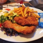 Zudem war das Schnitzel verhältnismäßig dick und mitnichten geklopft. Es war darüber hinaus auch noch relativ zäh.