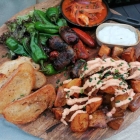 Da wir an diesem Abend noch eine zweite Einkehr im Hinterkopf hatten – der gute Ruf der Premiumbuletten von der „19ten Straße“ hatte die Neugier des Pfälzers geweckt –, kam uns eine solche Platte zum Teilen gerade recht. Die spanische Variante sagte uns dabei am meisten zu. Für nicht gerade schüchterne 46,50 Euro bot sie einen bunten Reigen gängiger Tapas von Aioli bis Patatas Bravas. Wir waren gespannt, ob die Jungs aus der „Lächel-Küche“ auch bei uns für gute Stimmung auf den Tellern sorgen würden.