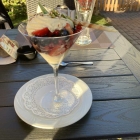 Dies musste nun verdaut werden. Wir bestellten einen Ramazotti mit Eis und Zitrone und einen Akquavit. Die kleinen Ideenbeschleuniger wurden optimal gekühlt serviert. Nun noch ein Dessert. Einmal creme brülee mit einer kun sprigen Aussenhaut und einmal marinierte Beerenfrüchte mit Mascarponecreme und Sahne. Ein schöner Abschluss.